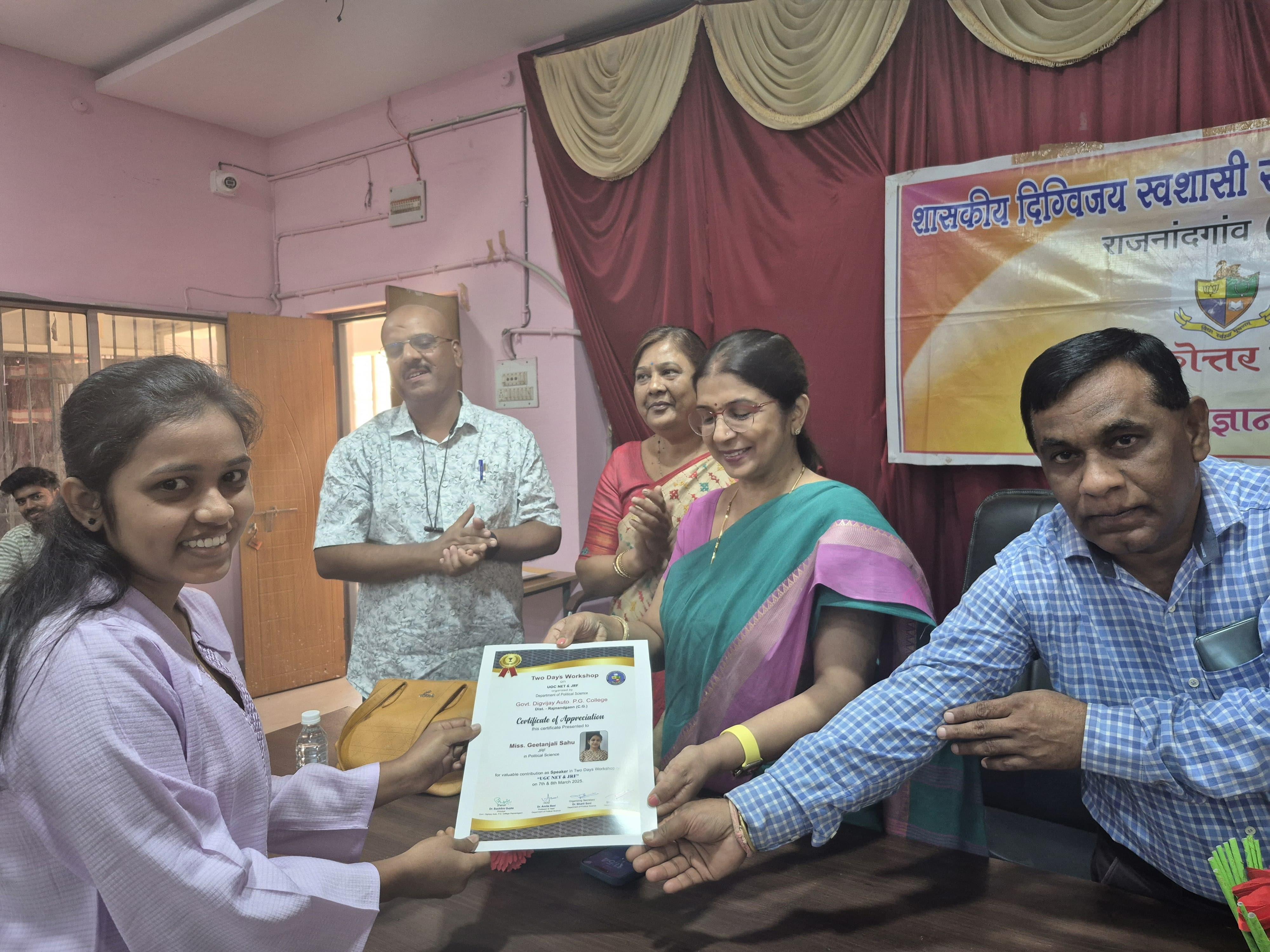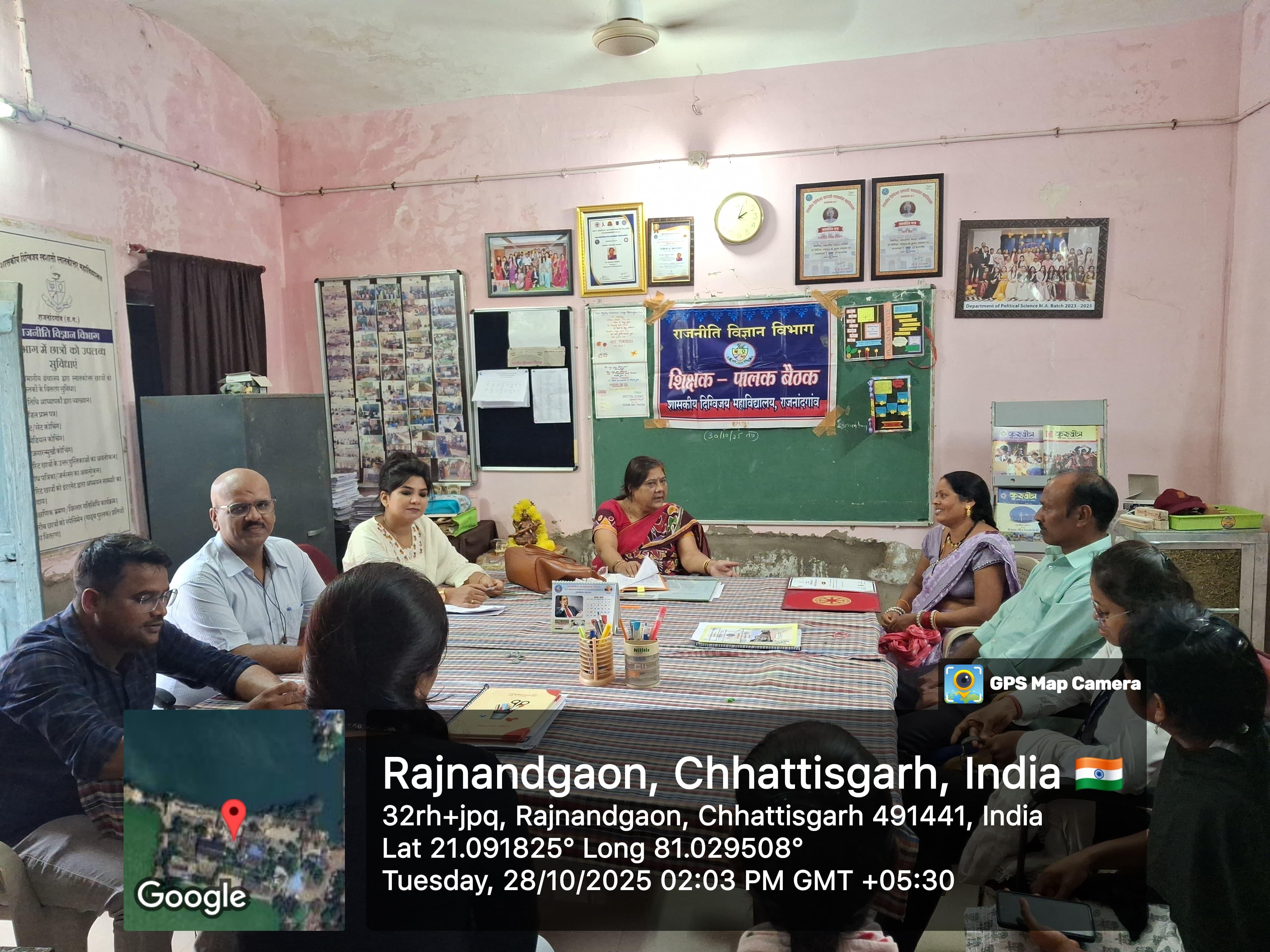 शासकीय दिग्विजय स्वशासी स्नातकोत्तर महाविद्यालय राजनांदगांव के प्राचार्य डॉ.सुचित्रा गुप्ता के निर्देशन एवं समाजकार्य विभागाध्यक्ष श्रीमती ललिता साहू के मार्गदर्शन में "यातायात सड़क सुरक्षा सप्ताह" पर समाज कार्य के विद्यार्थियों द्वारा जन जागरूकता रैली व नुक्कड़ नाटक का आयोजन महाविद्यालय परिसर से मानव मंदिर चौक तक किया गया।उक्त कार्यक्रम में डॉ.सुचित्रा गुप्ता के द्वारा अपने उद्बोधन में विद्यार्थियों को जागरूक करते हुए - यातायात सुरक्षा के नियमों एवं ट्रैफिक नियमो की जानकारी से अवगत कराया एवं अपने आस पास के लोगो को सड़क नियमो के प्रति जागरूक करने की प्रेरणा दी। साथ ही समाज कार्य विभागाध्यक्ष श्रीमती ललिता साहू द्वारा युवाओ को संबोधित करते हुए कहा कि " शराब पी कर गाड़ी न चलाये, दो से अधिक सवारी न बैठाये " उक्त रैली के अंतर्गत विद्यार्थियों द्वारा यातायात सड़क सुरक्षा सप्ताह पर जन जागरूकता हेतु विभिन्न नारे लगाए गए। मोबाइल का साथ सड़क पर घात, हेलमेट पहनो सुरक्षित रहो, सावधानी हटी दुर्घटना घटी आदि स्लोगन के माध्यम से जनता को जागरूक किया गया एवं मानव मंदिर चौक पर नुक्कड़ नाटक का आयोजन किया गया । नाटक में विभिन्न स्लोगन के माध्यम से विद्यार्थियों द्वारा आम जनता के मध्य यातायात सड़क सुरक्षा नियमों व सड़क दुर्घटनाओं से बचने का संदेश दिया गया। उक्त कार्यक्रम में समाजशास्त्र विभागाध्यक्ष डॉ ए. के. मंडावी, समाजकार्य विभागाध्यक्ष श्रीमती ललिता साहू ,श्रीमती शालिनी सोनी एवं सुश्री तारणी साहू डॉ प्रियंका लोहिया श्रीमती चित्राशा राठौर एवं समाज कार्य के सभी विद्यार्थी उपस्थित रहे।