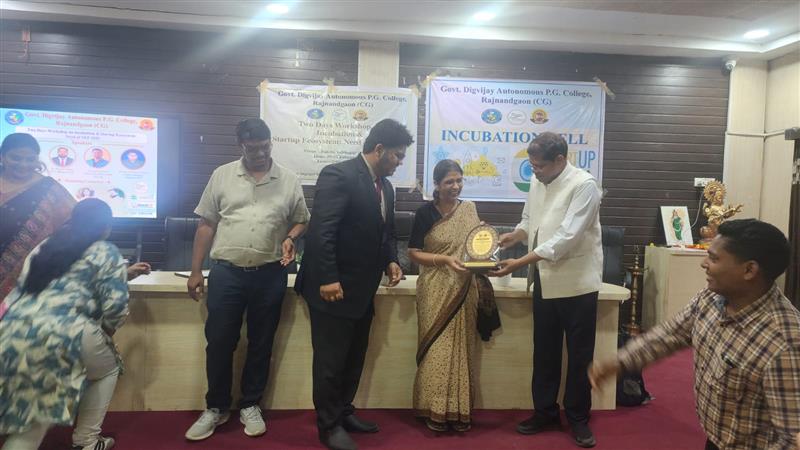 राजनांदगांव। शासकीय दिग्विजय महाविद्यालय के प्राचार्य डॉ.सुचित्रा गुप्ता के निर्देशन में इनक्यूबेशन सेल के समन्वयक डॉ. केशव राम आडिल , कार्यशाला के आयोजन सचिव वंदना मिश्रा, एवं लिकेश्वर सिन्हा के मार्गदर्शन में "इनक्यूबेशन और स्टार्टअप इकोसिस्टम" विषय पर दो दिवसीय कार्यशाला का शुभारंभ सरस्वती वंदना एवं दीप प्रज्वलन कर किया गया।
