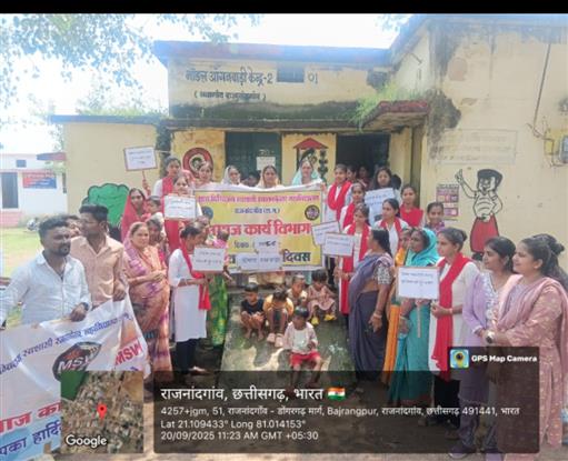 आज दिनांक 20.9.2025 को शासकीय दिग्विजय स्वशासी स्नातकोत्तर महाविद्यालय, राजनांदगांव के समाज कार्य विभाग के द्वारा " पोषण पखवाड़ा माह" कार्यक्रम का आयोजन किया गया l उक्त कार्यक्रम प्राचार्य डॉ.सुचित्रा गुप्ता के निर्देशन में तथा समाज कार्य विभागाध्यक्ष श्रीमती ललिता साहू के मार्गदर्शन में किया गया । उक्त कार्यक्रम मॉडल आंगनबाड़ी केंद्र क्रमांक 02 बजरंगपुर नवागांव, जिला राजनांदगांव में किया गया। इस कार्यक्रम के अंतर्गत समाजकार्य विभाग के विद्यार्थियों एवं आंगनवाड़ी के बच्चों द्वारा सामूहिक रूप से रैली निकाली गई। जिसमे पोषण पखवाड़ा संबंधित विभिन्न नारे एवं स्लोगन लगाए गए। सभी अतिथियों का पुष्प गुच्छ से स्वागत किया गया । समाजकार्य विभागाध्यक्ष श्रीमती ललिता साहू ने अपने उद्बोधन में कहा कि "स्वस्थ शरीर में स्वस्थ मस्तिष्क निवास करता है । पोषण जीवन में शारीरिक विकास , कार्य क्षमता और ऊर्जा का आधार है। आंगनवाड़ी के द्वारा छोटे बच्चों व गर्भवती महिलाओं को संतुलित भोजन आहार के बारे में जानकारी प्रदान की जाती है। लोगों को संतुलित आहार व पोषण और स्वस्थ जीवन शैली के बारे में जागरूक करना "सुपोषित भारत सशक्त भारत"अभियान का मुख्य उद्देश्य है ।" आंगनवाड़ी कार्यकर्ता ने अपने उद्बोधन में शासकीय दिग्विजय महाविद्यालय के प्राध्यापकों व विद्यार्थियों द्वारा पोषण माह दिवस पर सराहनीय कार्यक्रम करने के लिए आभार व्यक्त किया। तथा भविष्य में ऐसे कार्यक्रम की अपेक्षा व्यक्ति की । बच्चों व महिलाओ को पासिंग बॉल सहित विभिन्न प्रकार के खेलकूद कराये गए । समाजकार्य विभाग के स्ववित्तीय प्राध्यापक सुश्री तारिणी साहू , श्रीमती शालिनी सोनी एवं समाज कार्य विभाग के सभी विद्यार्थी उपस्थित रहे l