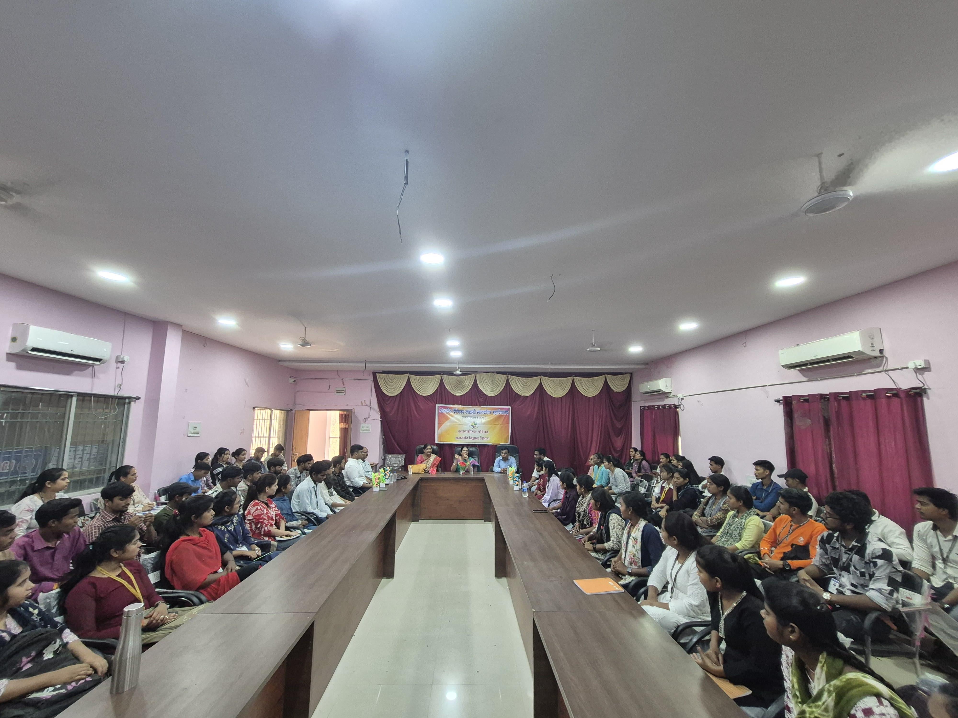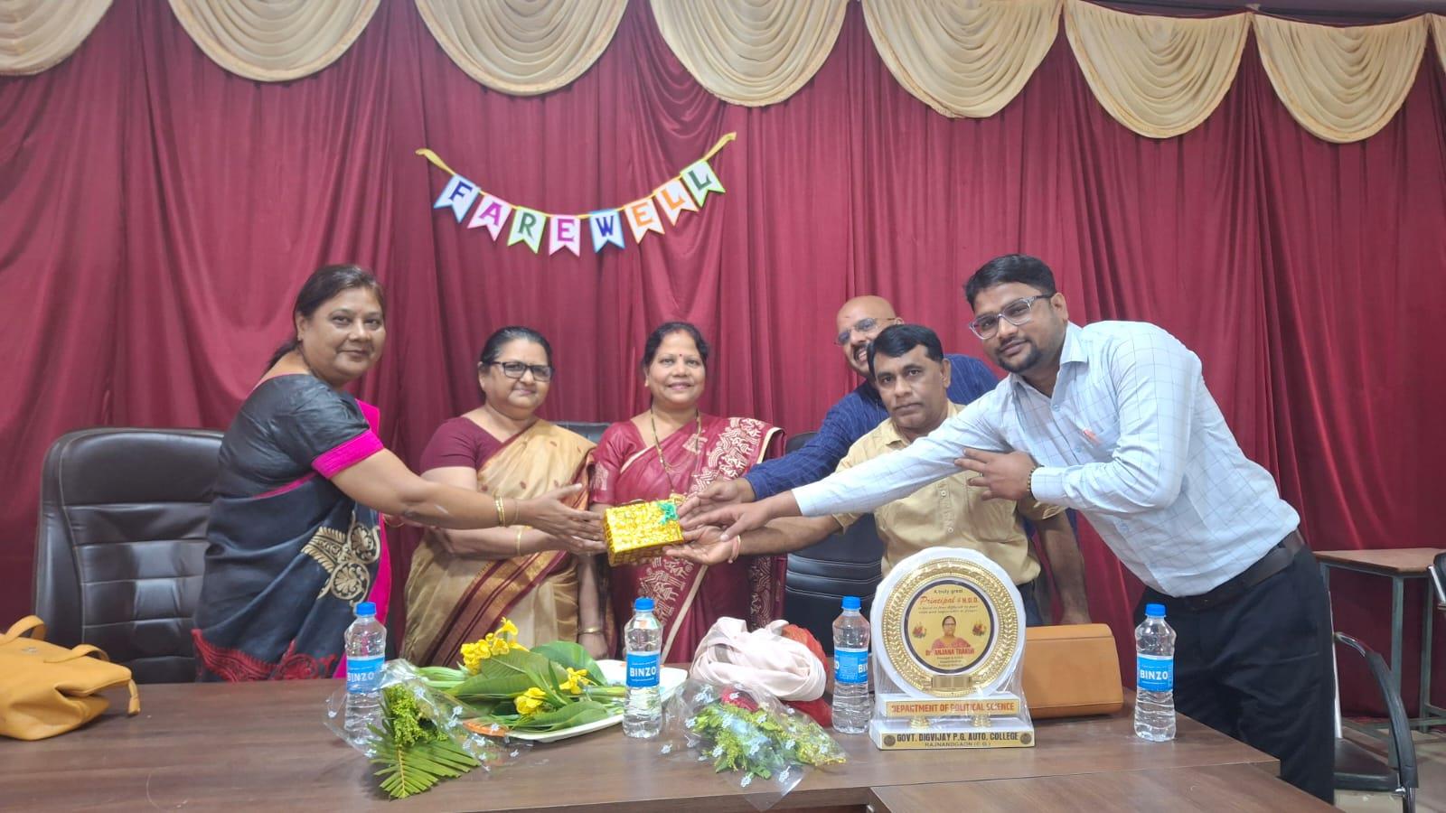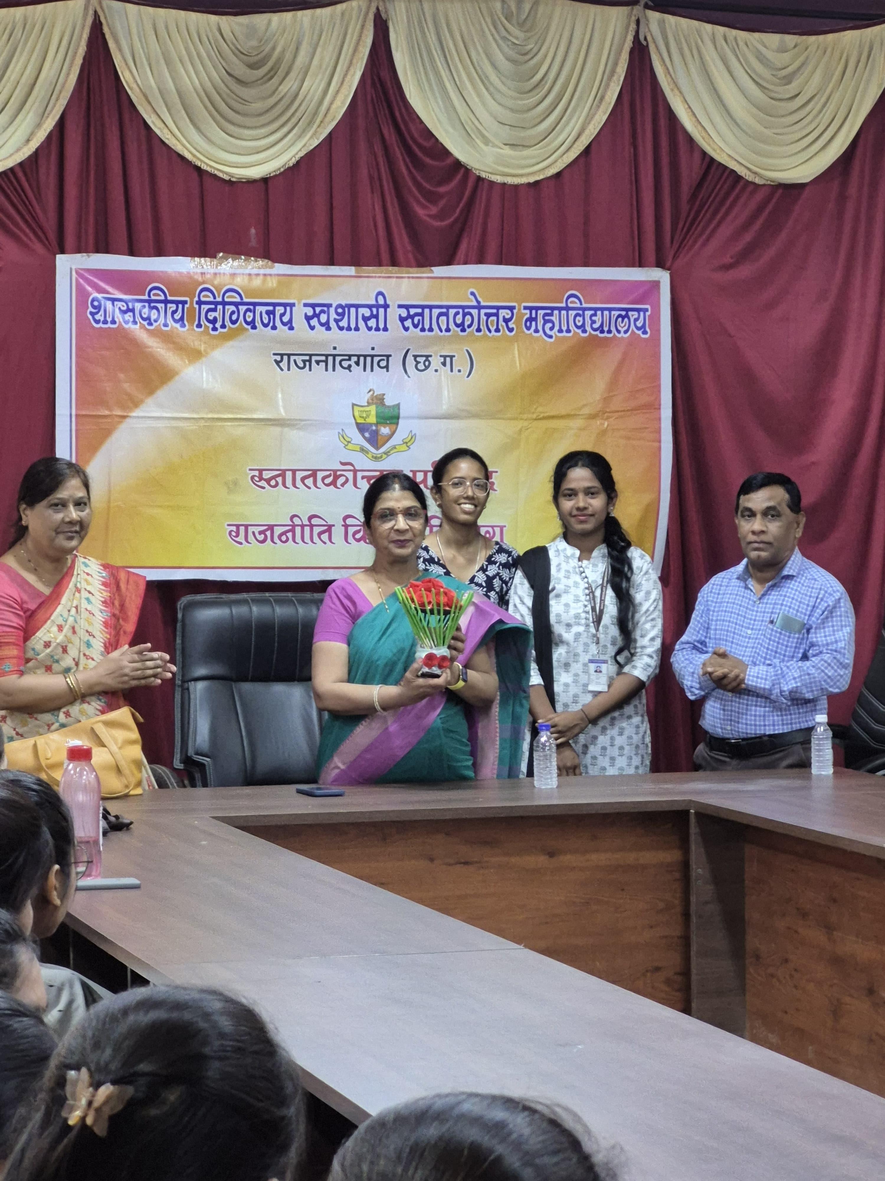 शासकीय दिग्विजय स्वशासी स्नातकोत्तर महाविद्यालय राजनांदगांव के प्राचार्य डॉ.सुचित्रा गुप्ता के निर्देशन एवं समाजकार्य विभागाध्यक्ष श्रीमती ललिता साहू के मार्गदर्शन में "यातायात सड़क सुरक्षा सप्ताह" पर समाज कार्य के विद्यार्थियों द्वारा जन जागरूकता रैली व नुक्कड़ नाटक का आयोजन महाविद्यालय परिसर से मानव मंदिर चौक तक किया गया।उक्त कार्यक्रम में डॉ.सुचित्रा गुप्ता के द्वारा अपने उद्बोधन में विद्यार्थियों को जागरूक करते हुए - यातायात सुरक्षा के नियमों एवं ट्रैफिक नियमो की जानकारी से अवगत कराया एवं अपने आस पास के लोगो को सड़क नियमो के प्रति जागरूक करने की प्रेरणा दी। साथ ही समाज कार्य विभागाध्यक्ष श्रीमती ललिता साहू द्वारा युवाओ को संबोधित करते हुए कहा कि " शराब पी कर गाड़ी न चलाये, दो से अधिक सवारी न बैठाये " उक्त रैली के अंतर्गत विद्यार्थियों द्वारा यातायात सड़क सुरक्षा सप्ताह पर जन जागरूकता हेतु विभिन्न नारे लगाए गए। मोबाइल का साथ सड़क पर घात, हेलमेट पहनो सुरक्षित रहो, सावधानी हटी दुर्घटना घटी आदि स्लोगन के माध्यम से जनता को जागरूक किया गया एवं मानव मंदिर चौक पर नुक्कड़ नाटक का आयोजन किया गया । नाटक में विभिन्न स्लोगन के माध्यम से विद्यार्थियों द्वारा आम जनता के मध्य यातायात सड़क सुरक्षा नियमों व सड़क दुर्घटनाओं से बचने का संदेश दिया गया। उक्त कार्यक्रम में समाजशास्त्र विभागाध्यक्ष डॉ ए. के. मंडावी, समाजकार्य विभागाध्यक्ष श्रीमती ललिता साहू ,श्रीमती शालिनी सोनी एवं सुश्री तारणी साहू डॉ प्रियंका लोहिया श्रीमती चित्राशा राठौर एवं समाज कार्य के सभी विद्यार्थी उपस्थित रहे।