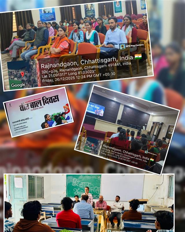 शासकीय दिग्विजय महाविद्यालय, राजनांदगांव में शासन के निर्देशानुसार प्राचार्य डॉ. सुचित्रा गुप्ता के मार्गदर्शन में वीर बाल दिवस का आयोजन राष्ट्रीय सेवा योजना द्वारा किया गया। कार्यक्रम में मुख्य वक्ता के रूप मे इतिहास विभाग के विभागाध्यक्ष डॉ शैलेंद्र सिंह ने कहा की श्री गुरु गोविंद सिंह जी के साहिबजादों बाबा जोरावर सिंह जी और बाबा फतेह सिंह जी के सर्वोच्च बलिदान को याद करते हुए वीर बाल दिवस मनाया जाता है, इस कार्यक्रम का मुख्य उद्देश्य युवा पीढ़ी को साहिबजादों के अदम्य साहस, वीरता और धर्म के प्रति उनकी अटूट निष्ठा से परिचित कराना था,साहिबजादों का बलिदान केवल सिख इतिहास की नहीं, बल्कि विश्व इतिहास की एक अभूतपूर्व घटना है। इतनी कम उम्र में अन्याय के खिलाफ डटे रहना हमें सिखाता है कि धर्म और सत्य के मार्ग पर चलते हुए कभी झुकना नहीं चाहिए। प्रो.चिरंजीव पाण्डे,डॉ. भारती सोनी, डॉ.अजय शर्मा, श्री तोमेंद्र साहू सहित भारी संख्या में छात्रो की उपस्थिति में प्रो. हीरेंद्र बहादुर ठाकुर ने कहा की वीर बालकों का बलिदान हमें यह बताता है की धर्म की रक्षा के लिए की गई उनकी शाहदत ने उन्हे अमर बना दिया। उक्त कार्यक्रम में छात्रों ने वीर बालकों के अदम्य साहस पर अपने विचार रखे। राष्ट्रीय सेवा योजना के कार्यक्रम अधिकारी प्रो. संजय सप्तर्षि ने आगंतुकों का आभार व्यक्त किया और युवाओं से साहिबजादों के पदचिह्नों पर चलने का आह्वान किया।