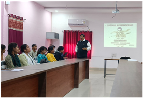 कार्यक्रम की शुरुआत करते हुए डॉ. कविता साकुरे ने कार्यक्रम के मुख्या वक्ता डॉ. ओमकार लाल श्रीवास्तव से सभी को परिचित करवाया | विभागाध्यक्ष डॉ. के. के. देवांगन ने कार्यक्रम की रूपरेखा की जानकारी दी | महाविद्यालय के प्राचार्य डॉ. सुचित्रा गुप्ता जी ने अपने उद्बोधन में कहा कि महान गणितज्ञ श्रीनिवास रामानुजन की जयंती पर राष्ट्रीय गणित दिवस मनाया जाता है व राष्ट्रीय गणित दिवस मनाये जाने का कारण हम और हमारी पीढियां श्रीनिवास रामानुजन को याद रखे एवं उनकी पदचिन्हों पर चलने का प्रयास करे| साथ ही महान गणितज्ञ श्रीनिवास रामानुजन की संक्षिप्त जीवनी से विद्यार्थियों को सन्देश दिया कि विपरीत परिस्थितियों व सीमित संसाधनों में भी अपने जुनून और समर्पण से महानता हासिल की जा सकती है |