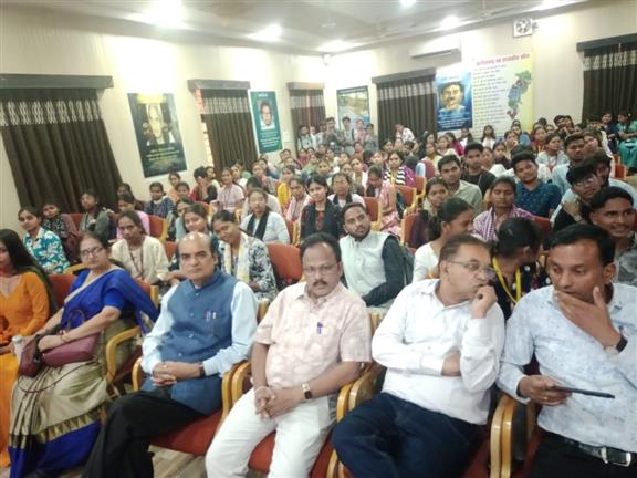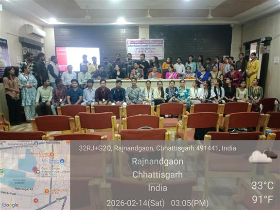 पत्रकारिता एवं जनसंचार विभाग में प्राचार्य डॉ सुचित्रा गुप्ता के कुशल मार्गदर्शन एवं विभागाध्यक्ष डॉ. बी.एन. जागृत के प्रभावी निर्देशन में 'वैल्यू एडेड कोर्स' के अंतर्गत फोटोग्राफी एवं वीडियोग्राफी विषय पर एक दिवसीय कार्यशाला का सफल आयोजन किया गया। इस गौरवमयी कार्यक्रम में मुख्य अतिथि के रूप फिल्म छत्तीसगढ़ी फिल्म'सरकारी दामाद' की पूरी टीम व FTII (भारतीय फिल्म और टेलीविजन संस्थान) पुणे से प्रणेश कुमार उपस्थित हुए । इस अवसर पर विभागाध्यक्ष डॉ. बी.एन. जागृत ने अपने प्रेरणादायी उद्बोधन में रेखांकित किया कि आज के डिजिटल युग में फोटोग्राफी और वीडियोग्राफी न केवल एक ट्रेंडिंग स्किल्स हैं, बल्कि आत्मनिर्भर बनने और लाभार्जन करने का एक सशक्त माध्यम भी हैं। प्रभारी प्राचार्य डॉ. अमिता बख्शी ने विभाग की इस पहल की सराहना करते हुए कहा कि ऐसे आयोजनों से विद्यार्थियों का व्यावहारिक ज्ञान बढ़ता है। कार्यशाला के तकनीकी सत्र में फिल्म 'सरकारी दामाद' के लेखक ने विद्यार्थियों को पटकथा लेखन और कहानी को दृश्यों में ढालने की बारीकियों से अवगत कराया। वहीं, फिल्म की मुख्य अभिनेत्री सुरभि श्रीवास्तव ने ग्लैमर जगत और पत्रकारिता के अंतर्संबंधों पर चर्चा करते हुए कहा कि इस क्षेत्र में करियर की अपार संभावनाएं मौजूद हैं, बस आवश्यकता है तो कड़े परिश्रम और निरंतर सीखने की ललक की। सत्र के दौरान फिल्म मेकिंग की तकनीकी बारीकियों और सिनेमा की बदलती प्रवृत्तियों पर भी विस्तृत जानकारी साझा की गई। यह पूरा आयोजन एक संवादात्मक सत्र के रूप में रहा, जहाँ विद्यार्थियों ने बेझिझक होकर फ़िल्म के लिए लेखन, कैमरा तकनीक, लाइट सेटअप और एडिटिंग से जुड़े अपने सवाल विशेषज्ञों के समक्ष रखे। विशेषज्ञों द्वारा दिए गए तार्किक और संतोषजनक उत्तरों से विद्यार्थी अत्यंत लाभान्वित हुए, जिससे उनकी रचनात्मक सोच को एक नई दिशा मिली। कार्यक्रम का संचालन कु विभा सिंह व आभार डॉ प्रवीण साहू ने किया। कार्यक्रम में बड़ी संख्या में विद्यार्थी व हिन्दी, वाणिज्य, अंग्रेजी व अन्य संकाय के प्राध्यापकों की गरिमामयी उपस्थिति रही ।