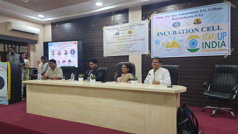 राजनांदगांव। शासकीय दिग्विजय महाविद्यालय के प्राचार्य डॉ.सुचित्रा गुप्ता के निर्देशन में इनक्यूबेशन सेल के समन्वयक डॉ. केशव राम आडिल , कार्यशाला के आयोजन सचिव वंदना मिश्रा, एवं लिकेश्वर सिन्हा के मार्गदर्शन में "इनक्यूबेशन और स्टार्टअप इकोसिस्टम" विषय पर दो दिवसीय कार्यशाला का शुभारंभ सरस्वती वंदना एवं दीप प्रज्वलन कर किया गया।