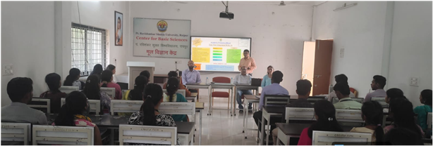 इस शैक्षणिक भ्रमण के अंतर्गतविद्यार्थियों ने सेंटर ऑफ बेसिक साइंस,पं.रविशंकर शुक्ल विश्वविद्यालय, रायपुर का भ्रमण किया, जहाँ उन्होंने रसायन, भौतिकी एवं जैव प्रौद्योगिकी प्रयोगशालाओं तथा पुस्तकालय का अवलोकन किया।इस अवसर पर गणित विभाग, सेंटर ऑफ बेसिक साइंस के विभागाध्यक्ष डॉ. गोविंद प्रसाद साहू द्वारा एकविशेष व्याख्यान दिया गया। अपने उद्बोधन मेंउन्होंने शोध के क्षेत्र में करियर की संभावनाओं,कृत्रिमबुद्धिमत्ता (।प्) के युग में गणित की भूमिका तथा समाज में एक अच्छ गणितज्ञ केयोगदान पर प्रकाश डाला। उन्होंने यह भी बताया कि गणित का मूल आधार स्वयंसिद्ध ;ंगपवउेद्ध होते हैं तथा विभिन्न स्वयंसिद्धों के आधार परगणित के विभिन्नश्नदपअमतेमेश् की कल्पना की जा सकती है। इसके अतिरिक्तविद्यार्थियों ने नवा रायपुर स्थित जनजातीय संग्रहालय एवं महादेव घाट का भी भ्रमणकिया, जिससे उन्हें सांस्कृतिक एवं सामाजिक दृष्टि सेभी समृद्ध अनुभव प्राप्त हुआ।