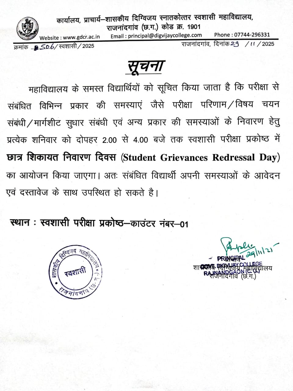 Government Digvijay Autonomous College,Rajnandgaon, a trailblazer of excellence in academics, sports, and holisticdevelopment, with its rich legacy of national and international sportsachievers, and a vibrant culture of learning, continues to illuminate theeducational landscape of Chhattisgarh. Its unwavering commitment to knowledge,discipline, and character-building makes it not just an academic Institution,but a Centre of inspiration shaping the leaders of tomorrow.